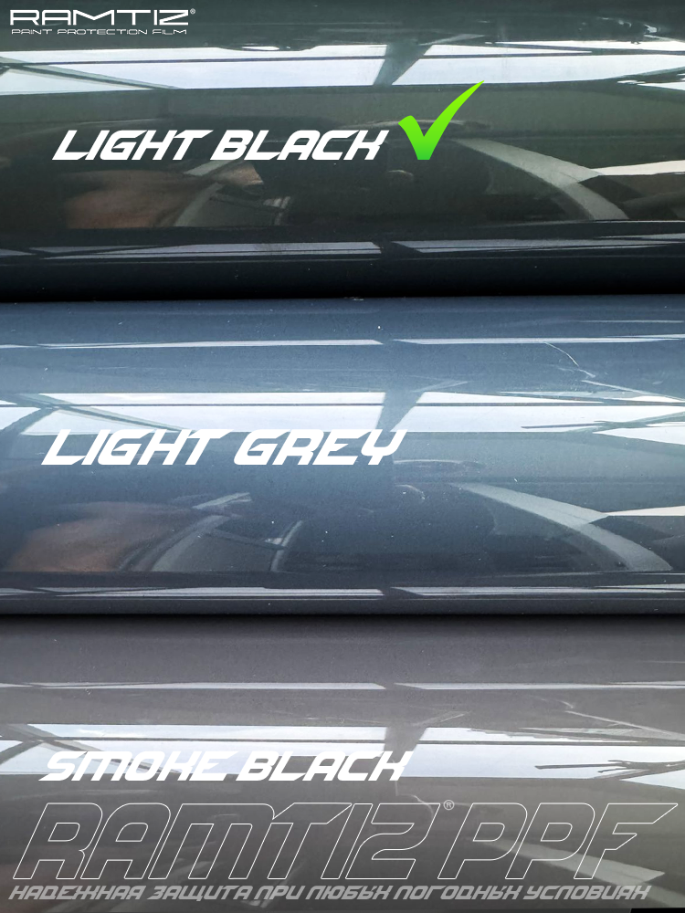 Полиуретановая антигравийная пленка Ramtiz T-Protection Light Black для защиты и стайлинга оптики.