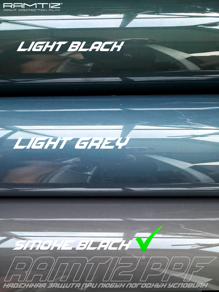 Полиуретановая антигравийная пленка Ramtiz T-Protection Smoke Black для защиты и стайлинга оптики.