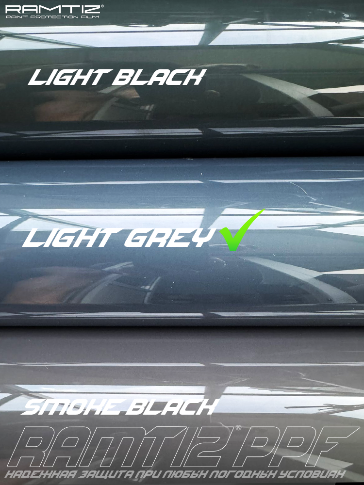 Полиуретановая антигравийная пленка Ramtiz T-Protection Light Grey для защиты и стайлинга оптики.