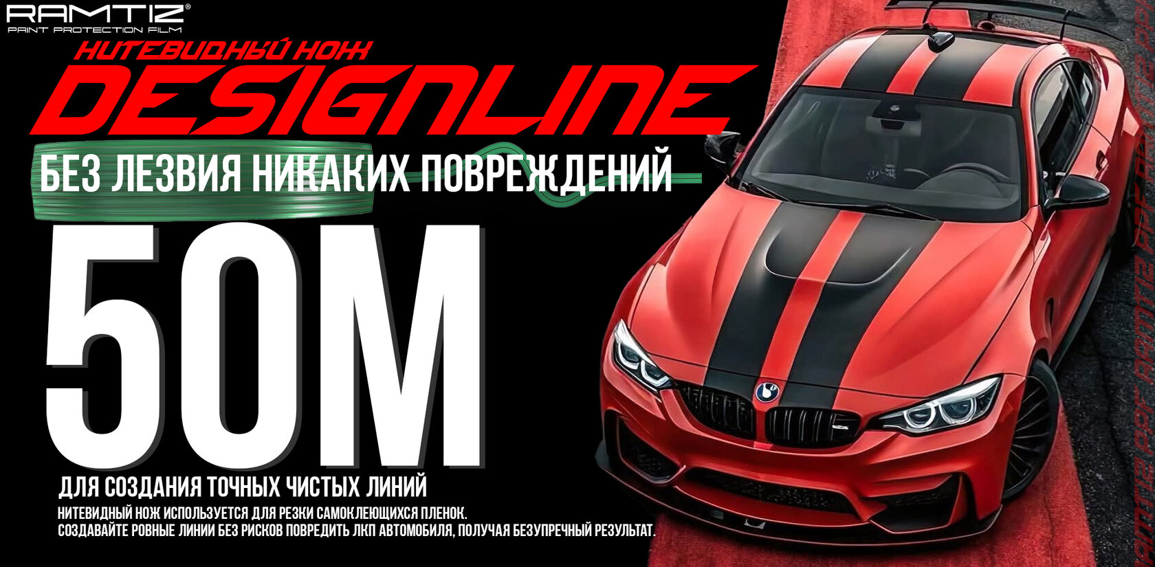Нитевидный нож — незаменимый инструмент в арсенале любого профессионального оклейщика винилом. Он представляет собой клейкую ленту шириной 3,5 мм и длиной 50 м, на которой нанесена тонкая режущая нить.